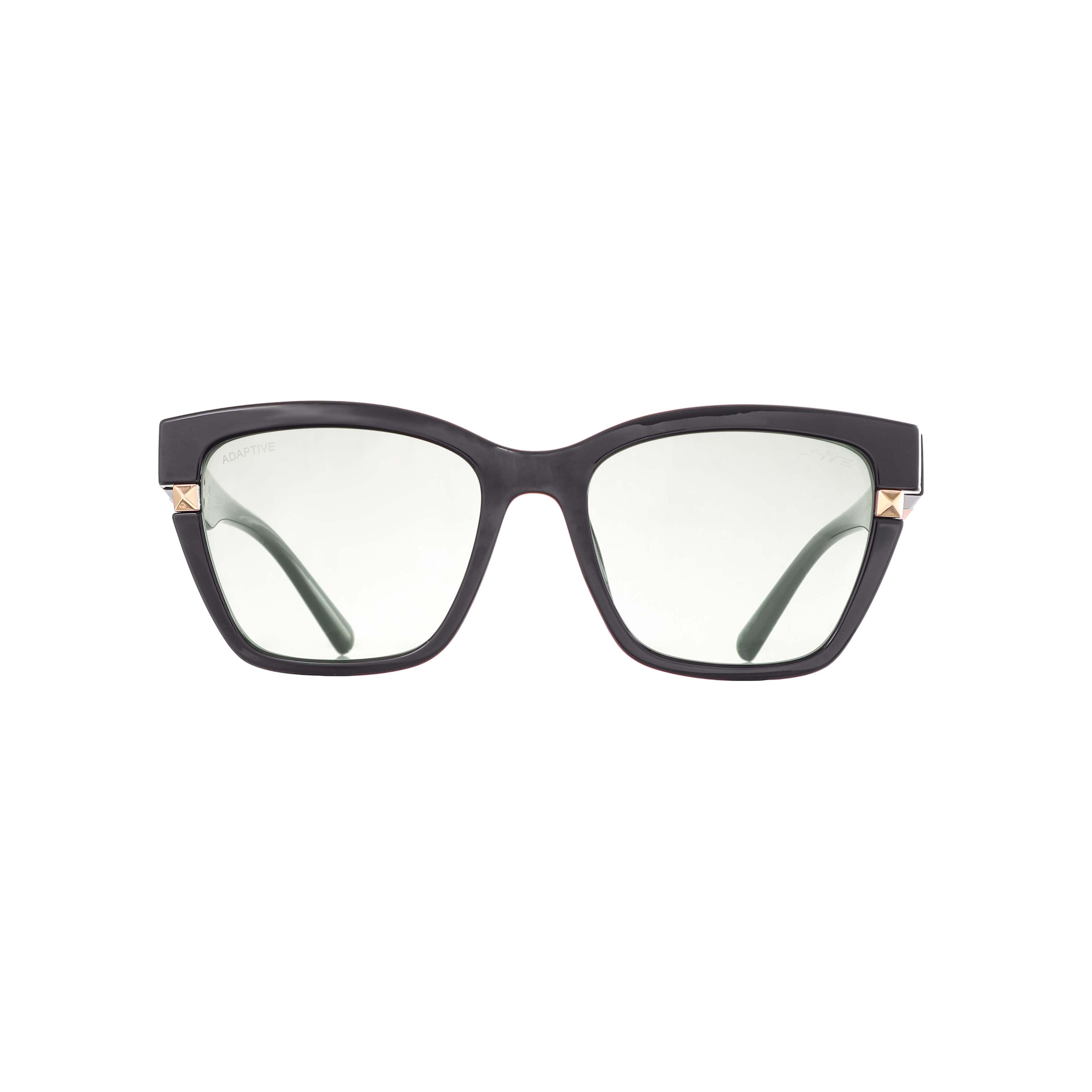 XITE Sunwear's RECTANGLE shaped WOMEN ADAPTIVE LENS sunglass. Size - One Size, [54-19-143] Shape - RECTANGLE Material - TR CATEGORY - SUNGLASS COLOUR - Black & Gold, Demi & Gold, Green & Gold, Magenta & Gold.